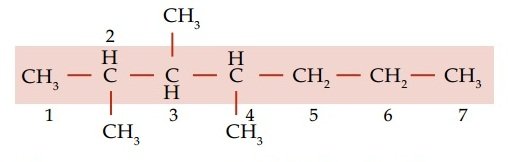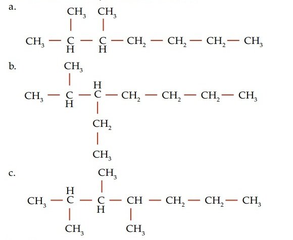 c. Terdapat 7 atom karbon pada rantai induk dan ada 3 gugus alkil metil pada atom karbon yang berbeda-beda.