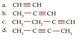 c. Terdapat 4 atom karbon dan ikatan rangkap 3 terletak pada atom C nomor 1 sehingga senyawa hidrokarbon tersebut bernama 1-butuna.