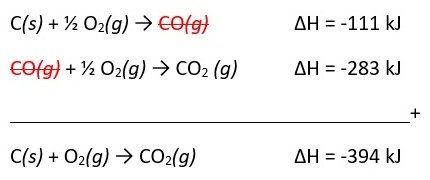 C(s) + ½ O2(g) → CO(g)                 ∆H = -111 kJ