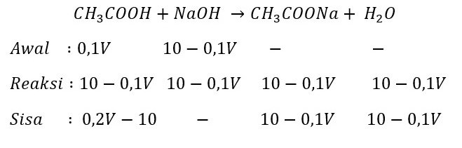 Seperti yang kita lihat, terdapat sisa CH3COOH sebesar 5 mmol, jadi larutan tersebut termasuk larutan penyangga.