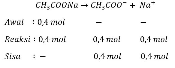 - 200 mL CH3COOH 0,1 M dan 200 mL NaOH 0,1 M
