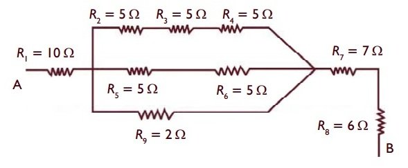RAB = 10 Ω + 1,5 Ω + 7 Ω + 6 Ω