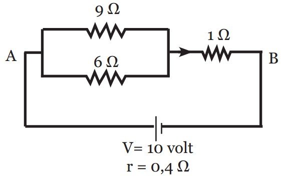 V = i x R = 2 x 3,6 = 7,2 volt