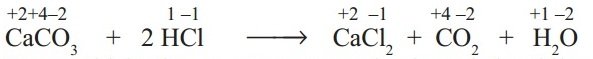 - CaCO3 + 2HCl → CaCl2 + CO2 + H2O