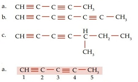 Alkuna adalah salah satu jenih senyawa hidrokarbon tak jenuh. Rumus umum alkuna adalah CnH2n-2. Sehingga, alkuna memiliki ciri khas yaitu mempunyai ikatan rangkap 3 pada rantai karbonnya. Tata nama alkuna pada umumnya sama saja dengan alkena, hanya akhiran –ena diganti menjadi –una. Untuk lebih jelasnya perhatikan contoh soal tata nama alkuna dan jawabannya berikut ini.