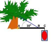 Tentukan besarnya tegangan tali yang menghubungkan batang kayu dengan pohon!
