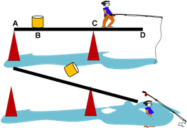 Jika jarak AB = 2 m, BC = 3 m dan AD = 8 m, berapa jarak terjauh anak dapat melangkah dari titik C agar papan kayu tidak terbalik?