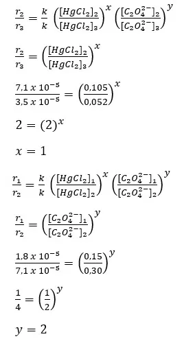1. orde reaksi terhadap HgCl2 dan C2O42-, serta orde reaksi keseluruhan.