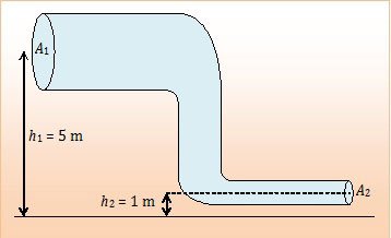 Posisi pipa besar adalah 5 m di atas tanah dan pipa kecil 1 m di atas tanah. Kecepatan aliran air pada pipa besar adalah 36 km/jam dengan tekanan 9,1 × 105 Pa, sedangkan tekanan di pipa yang kecil 2 × 105 Pa. Jika massa jenis air 1000 kg/m3 maka kecepatan air pada pipa kecil adalah ….