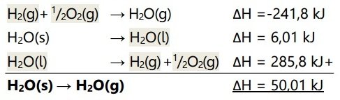H2O(g) + ½ O2(g) → H2O(l) ∆H = -285,8 kJ