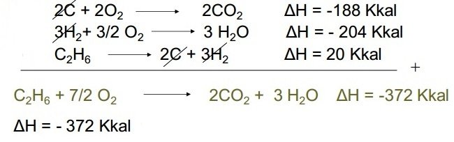 - 2C + 3H2 → C2H6 ∆H = -20 kkal