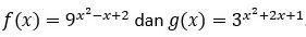 Jika (a, b) adalah interval dengan grafik y = f(x) berada di bawah grafik y = g(x), maka nilai a + 2b adalah …