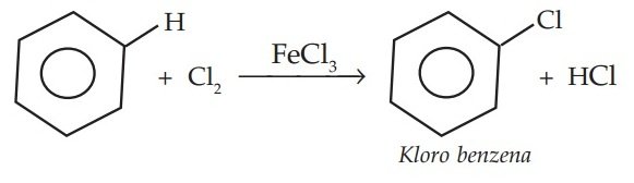 a. Benzena + gas klor dengan katalis FeCl3.
