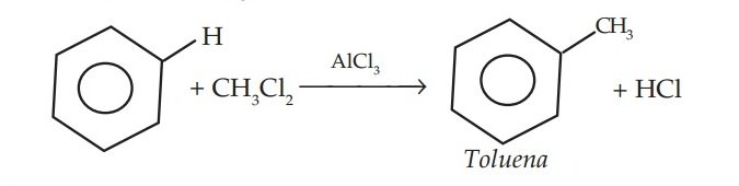 d. Benzena + etil klorida dengan katalis AlCl3.