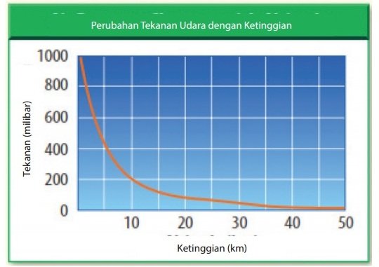 Dari tabel dapat kita lihat bahwa semakin tinggi suatu puncak maka tekananannya semakin kecil. Jadi, kisaran tekanan udara di puncak Himalaya adalah 200 milibar dan tekanan udara di puncak semeru sekitar 500 milibar.