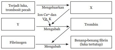 5. Perhatikan diagram proses pembekuan darah di bawah ini!
