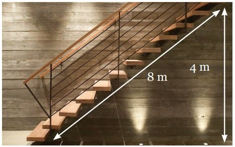 Berikut merupakan gambar skematis tangga yang ada di rumah Dayu. Panjang tangga tersebut adalah 8 meter, sedangkan ketinggiannya adalah 4 meter.