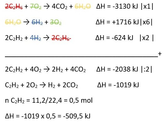 ∆HR = (4 ∆H0f CO2 + 2 ∆H0f HO2) – (2 ∆H0f C2H2 + 5 ∆H0f O2)