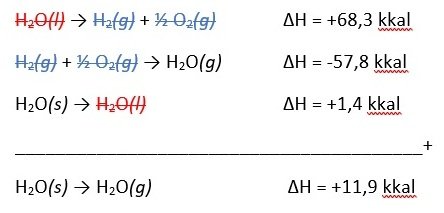 H2(g) + ½ O2(g) → H2O(g) ∆H = -57,8 kkal
