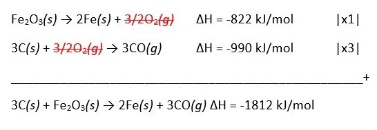 2Fe(s) + 3/2O2(g) → Fe2O3(s) ∆H = +822 kJ/mol