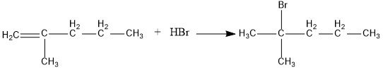 b. 2-metil-1-pentena + HBr