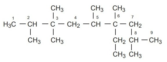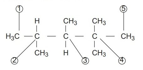 Dari struktur senyawa hidrokarbon di bawah ini, atom C kuartener ditunjukkan oleh C no …