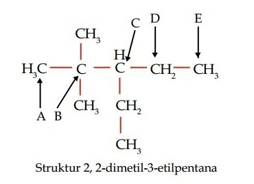 a. 2 atom C primer dan 3 atom C sekunder