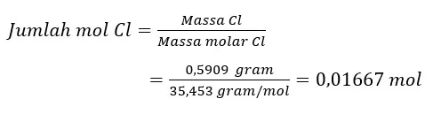 Jumlah mol Cl = gr/Ar = 33,3/35,5 = 0,93 mol