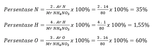 Bagaimana persentase tiap unsur penyusun senyawa (NH4)NO3?