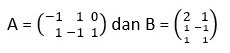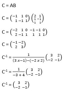 Jika matriks C = AB, invers matriks C adalah C−1 = ….