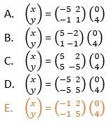 Banyaknya siswa laki-laki di sebuah kelas adalah 2/5 siswa perempuan. Jika 12 orang siswa perempuan meninggalkan kelas itu maka banyaknya siswa perempuan dan laki-laki menjadi sama. Jika x dan y berturut-turut menyatakan banyaknya siswa laki-laki dan perempuan maka matriks yang tepat untuk menyatakan banyaknya masing-masing siswa adalah ….