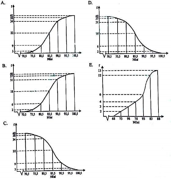 Grafik ogive positif yang sesuai dengan diagram tersebut adalah …
