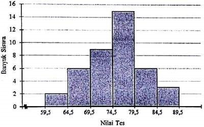 Perolehan nilai tes siswa suatu kelas disajikan pada histogram berikut.