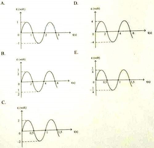 Jika kumparan itu diputar dengan kecepatan sudut empat kali dan jumlah lilitannya dijadikan 1/2 kali maka grafiknya adalah ….