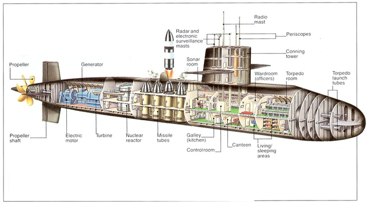 Kapal selam didesain dengan memiliki tangki pemberat di dalam lambungnya yang berfungsi mengatur kapal selam agar dapat terapung, melayang, atau tenggelam. Ketika tangki diisi penuh dengan air, maka berat keseluruhan kapal selam tidak dapat diimbangi oleh gaya ke atas yang dialami oleh kapal selam, sehingga kapal selam tenggelam. Tetapi jika sebagian air dalam tangki kapal selam dikeluarkan, maka kapal selam akan mengalami gaya ke atas yang lebih besar, sehingga kapal selam dapat melayang dalam air. Namun, ketika tangki dikosongkan maka gaya ke atas yang dialami kapal selam semakin besar, sehingga kapal selam dapat mengapung.
