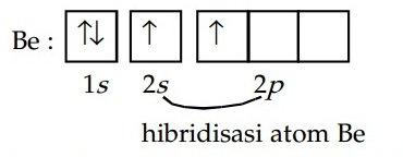 Karena akan berikatan dengan atom Cl, maka elektron terluar atom Be mengalami hibridisasi sehingga membentuk konfigurasi elektron terhibridisasi.
