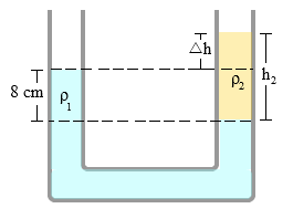 Massa jenis air dan minyak berturut-turut adalah 1000 kg/m3 dan 800 kg/m3. Tentukanlah perbedaan ketinggian air dan minyak (∆h).