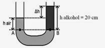 Sebuah pipa U yang diisi alkohol dan air dalam keadaan stabil tampak seperti gambar.