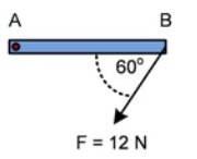 Batang AB = 2 meter dengan poros titik A memiliki gaya F sebesar 12 N membentuk sudut 600.