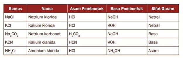 27. Beberapa garam dan asam basa pembentuknya tertera pada tabel berikut.
