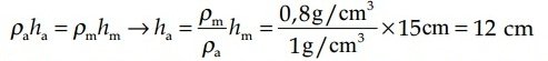 Perbedaan tinggi permukaan antara minyak dan air = hair – hminyak = 15 cm – 12 cm = 3 cm