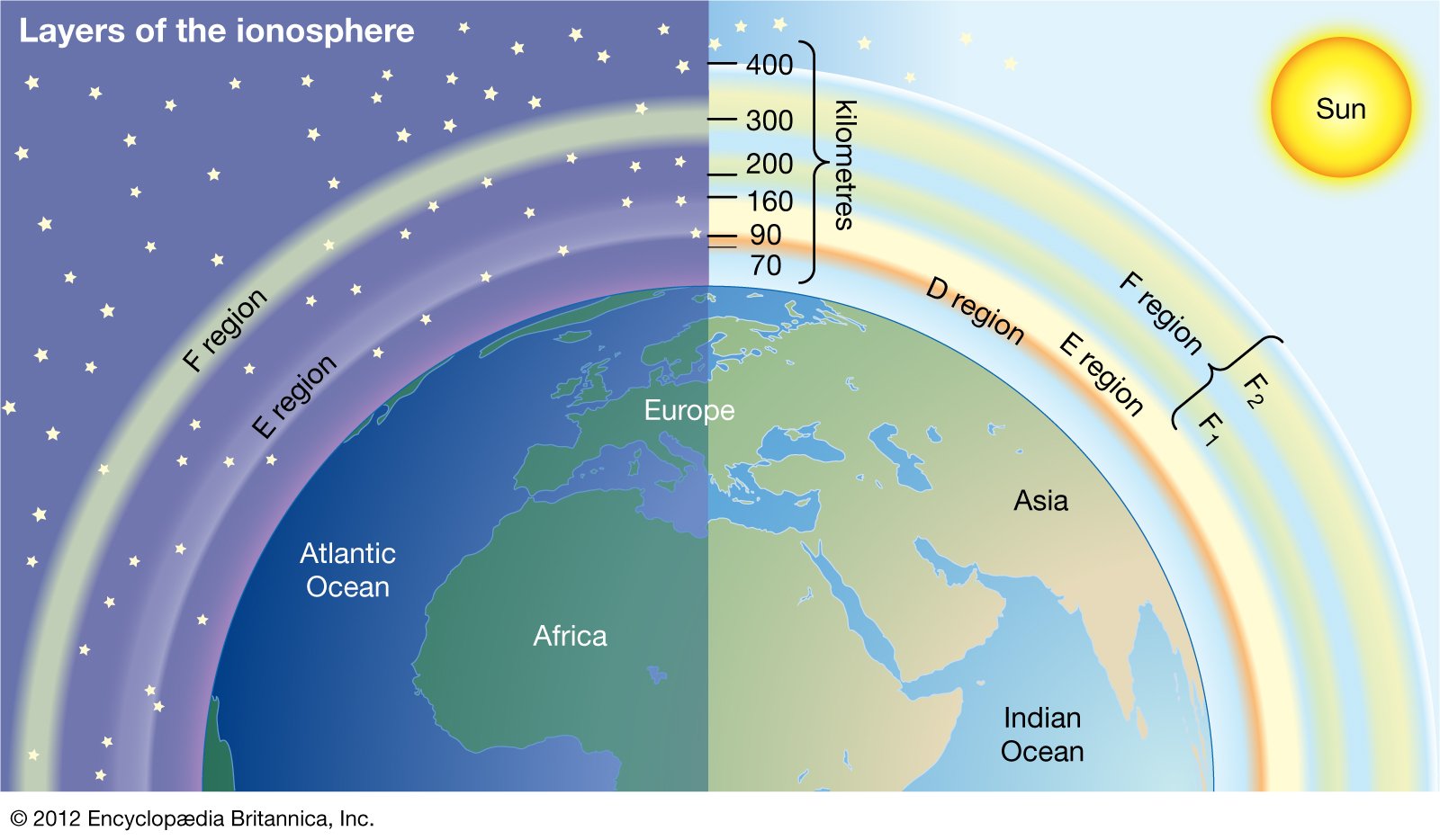 Lapisan ionosfer adalah lapisas atmosfer yang terletak pada ketinggian 80km – 450km di atas permukaan bumi. Dinamakan lapisan ionosfer karena pada lapisan ini molekul nitrogen dan oksigen banyak melepaskan elektron setelah melakukan penyerapan sinar ultraviolet Matahari. Akibatnya, pada lapisan ionosfer terdapat banyak sekali ion-ion positif dan elektron bebas. Sehingga lapisan ionosfer dapat menyebarkan gelombang radio dengan baik.