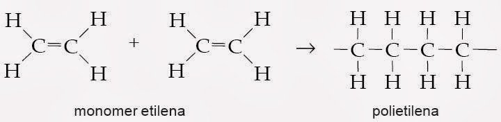 Reaksi polimerisasi adalah reaksi penggabungan molekul-molekul kecil (monomer) menjadi molekul-molekul besar (polimer) melalui proses pemutusan ikatan rangkap. Reaksi polimerisasi terhadi pada senyawa alkena dan alkuna. Contoh reaksi polimerisasi adalah sebagai berikut.