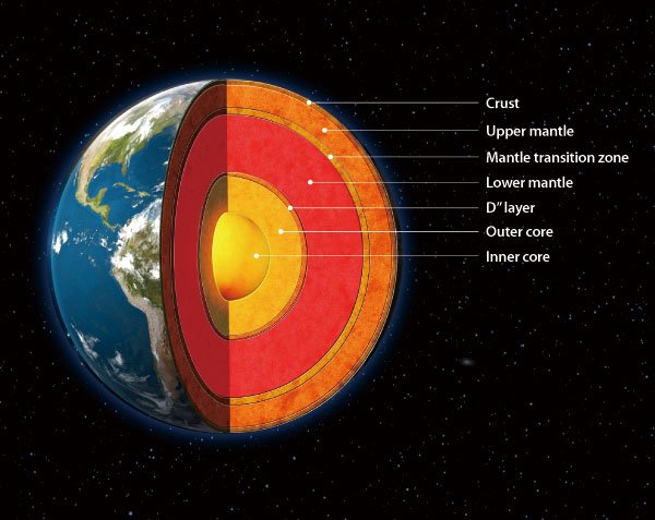 Susunan lapisan bumi terdiri dari banyak jenis material seperti batuan, tanah, air, serta semua hal yang membentuk planet bumi dapat dihuni. Susunan lapisan bumi terbagi menjadi 7 lapisan, yang meliputi: inti dalam , inti luar, lapisa D”, mantel bawah, zona transisi mantel, mantel atas, dan kerak bumi.