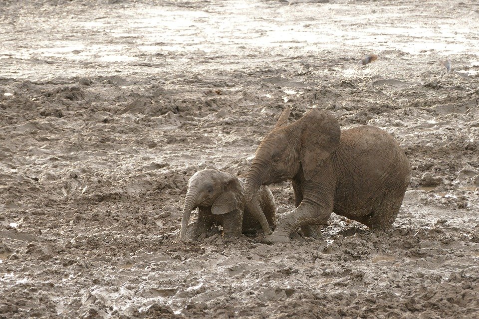 Gajah Afrika yang Sedang Mandi di Sungai Berlumpur image via pixabay.com