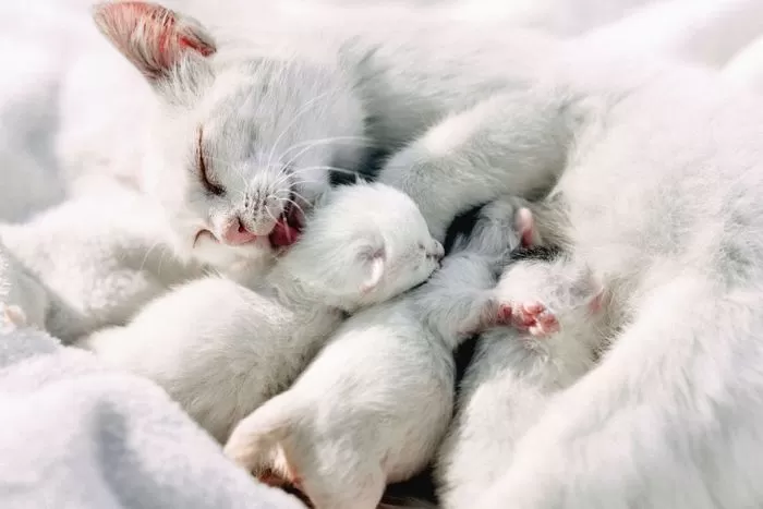 Induk Kucing Sedang Munyusui Anak-Anaknya