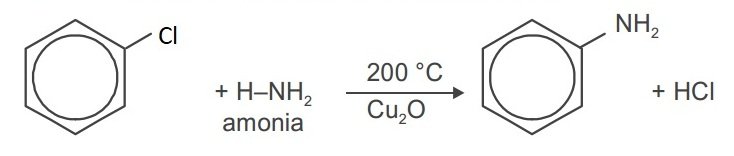 2. Fenil klorida dan amonia dipanaskan sampai 200ÂșC dengan katalis Cu2O di bawah tekanan