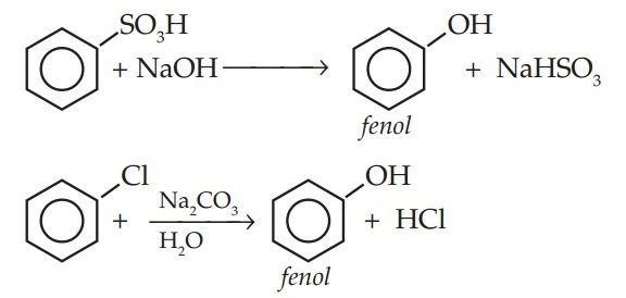 Fenol dapat dibuat dengan memaskan asam benzena sulfonat dalam alkali atau memanaskan halogen benzena dalam alkali..