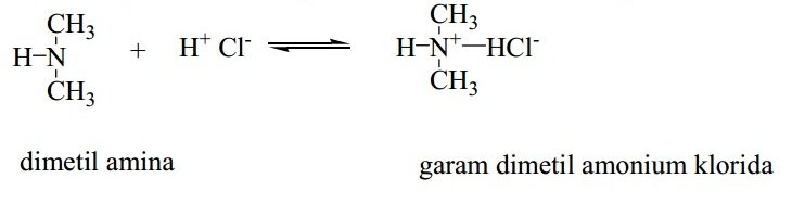 Amina dapat bereaksi dengan asam membentuk suatu garam alkil amonium halida.