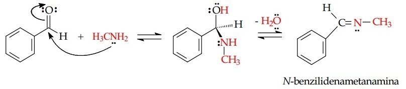 Senyawa amina bereaksi dengan aldehid menghasilkan imina N-tersubstitusi. Senyawa-senyawa ini biasanya dapat dipisahkan dengan cara diisolasi.